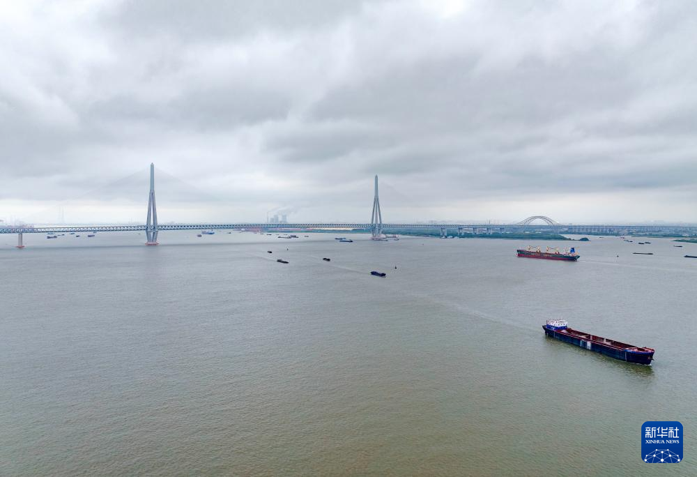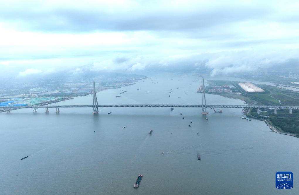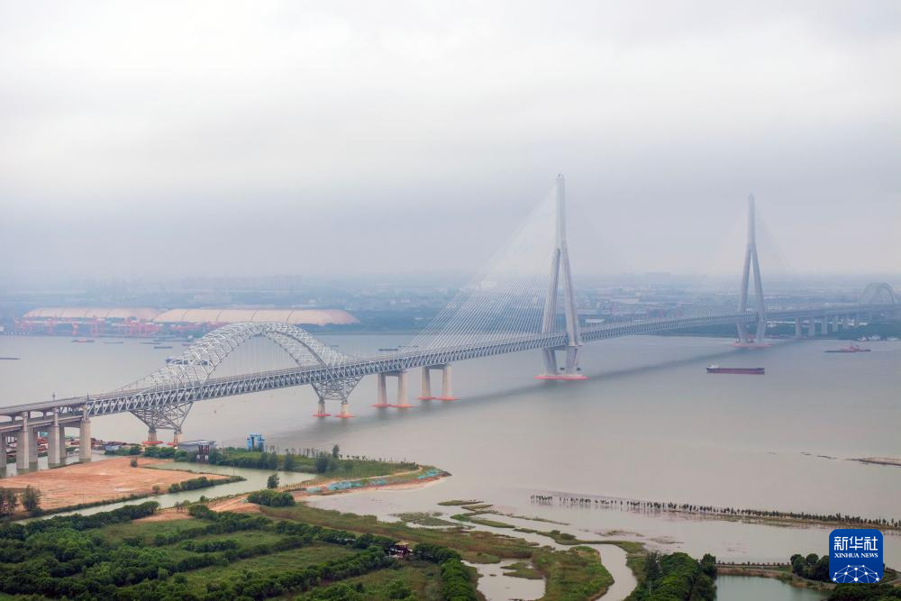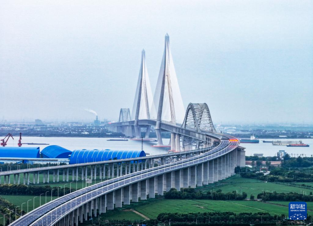 9月9日,车辆在常泰长江大桥上行驶(无人机照片)。新华社发(陈暐 摄)